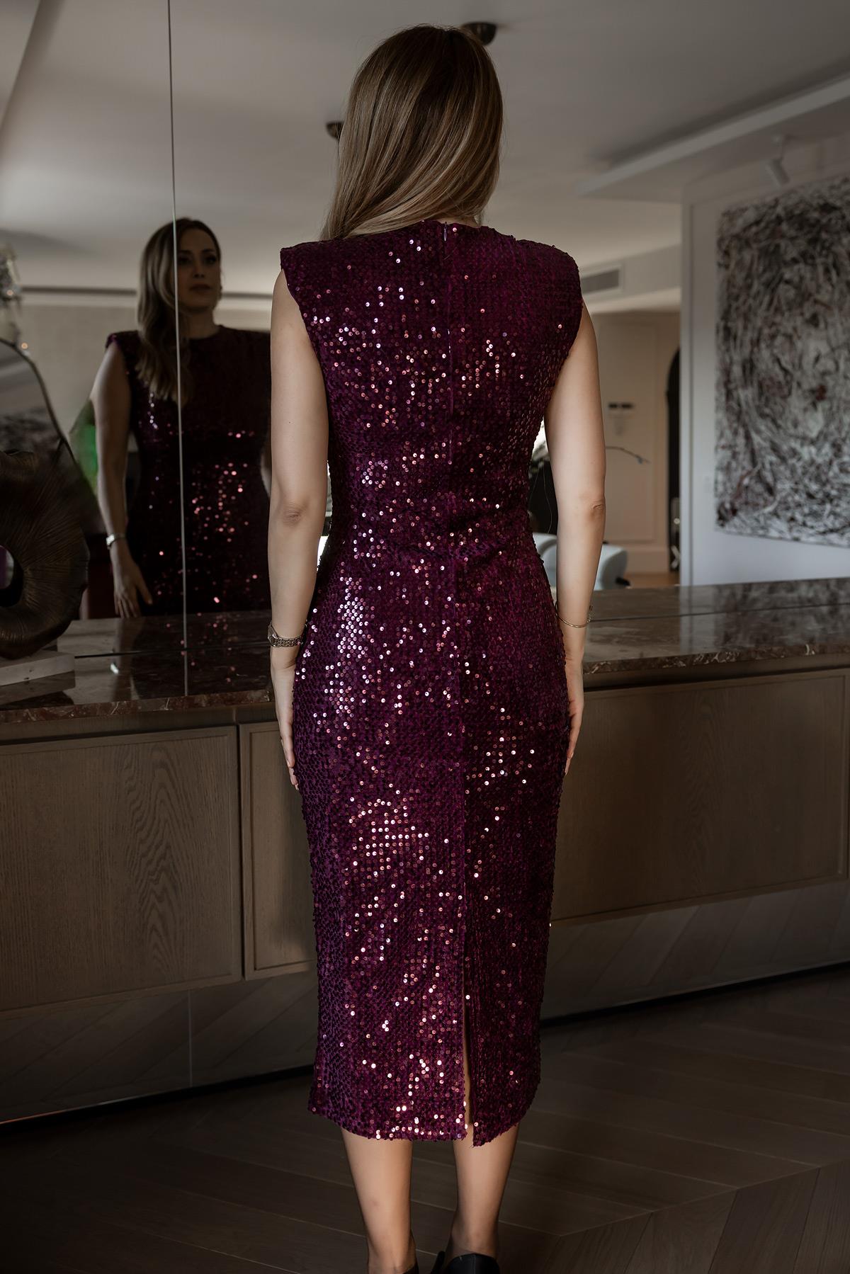 Vatkalı Payetli Elbise - MÜRDÜM (BFW383ELB0001142)