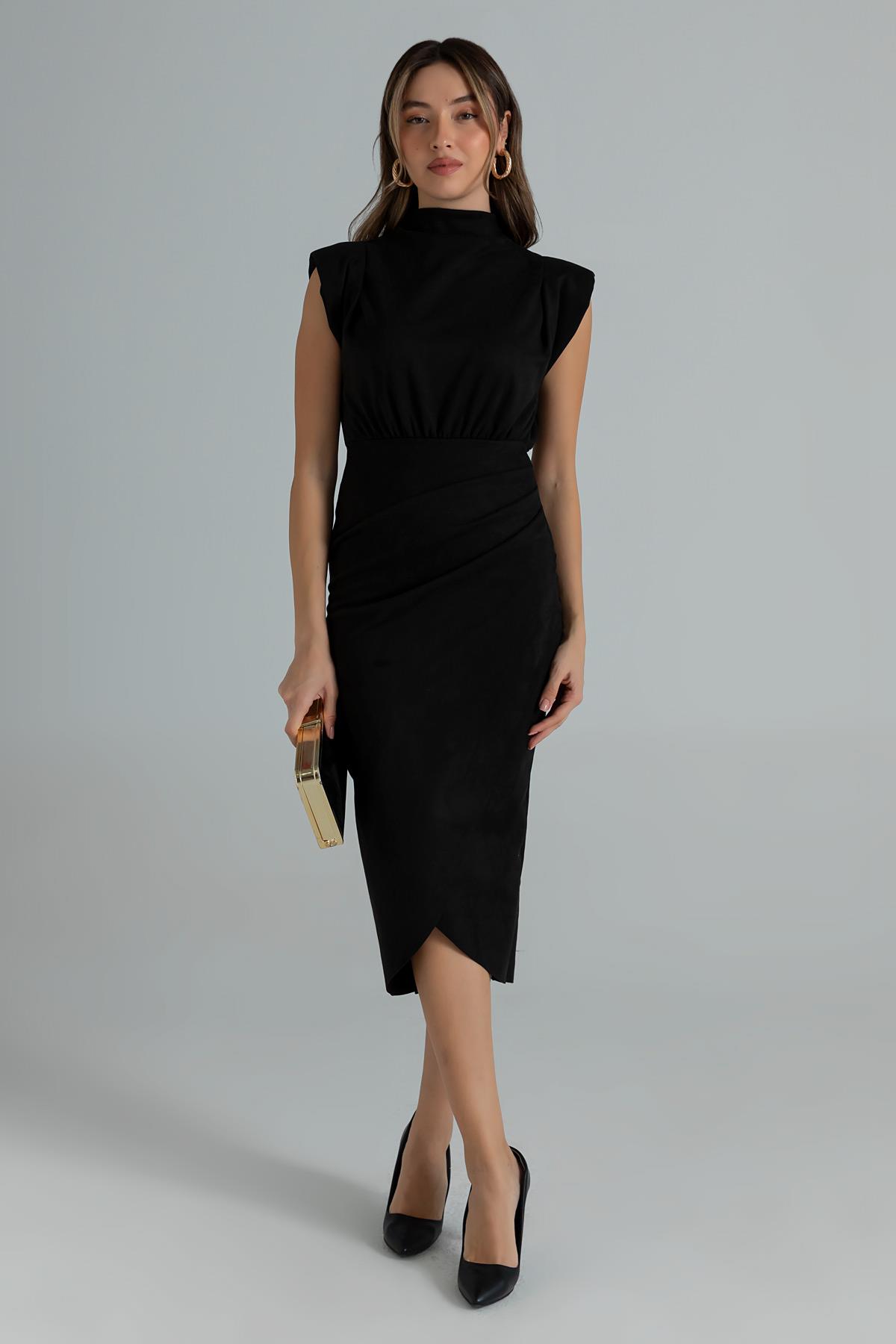 Vatkalı Süet Elbise - SİYAH (BFW065ELB0002100)