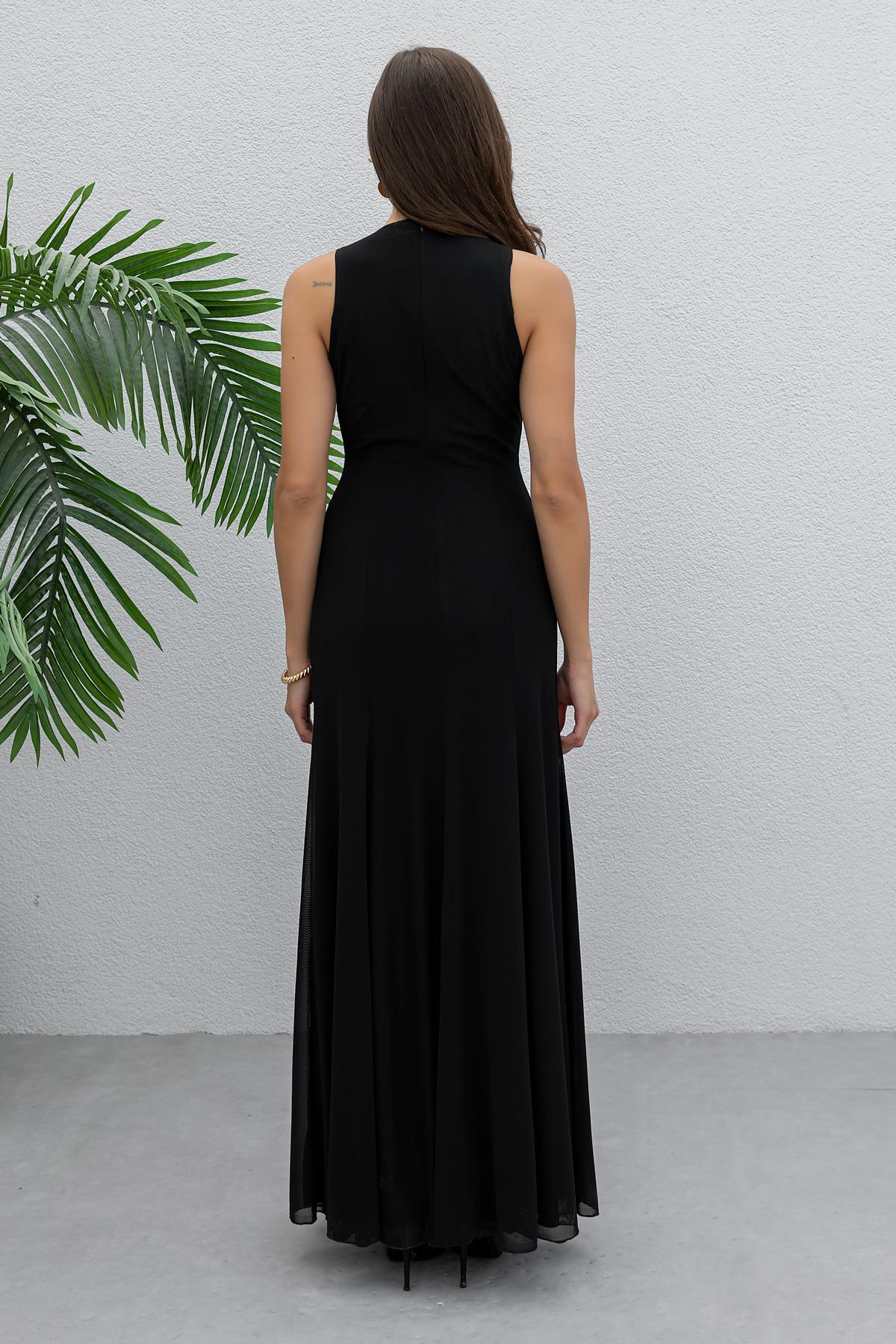 Yırtmaçlı Tül Elbise - SİYAH (BES355ELB0002100)