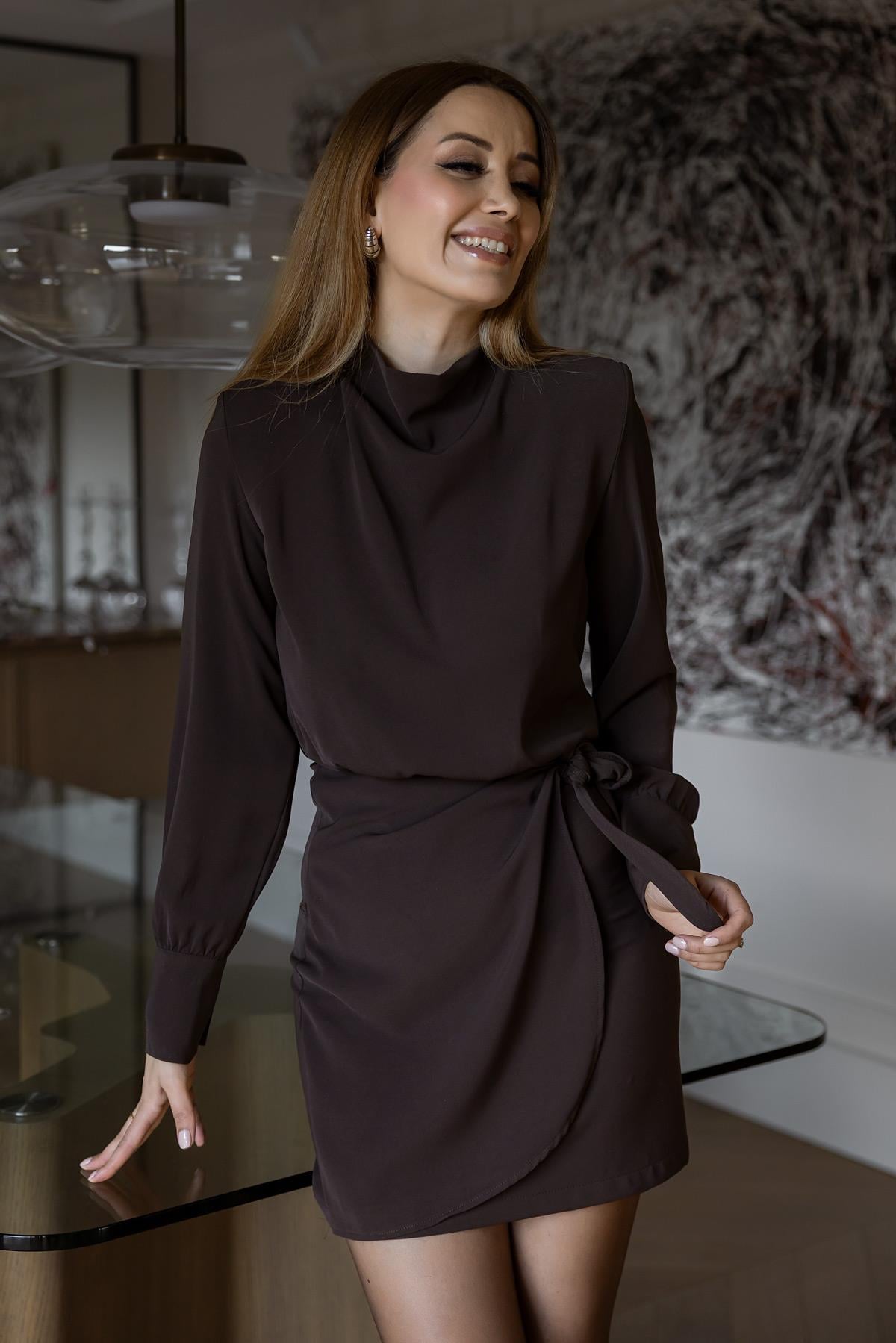 Anvelop Bağlamalı Mini Elbise - KAHVERENGİ (BFW505ELB0006112)