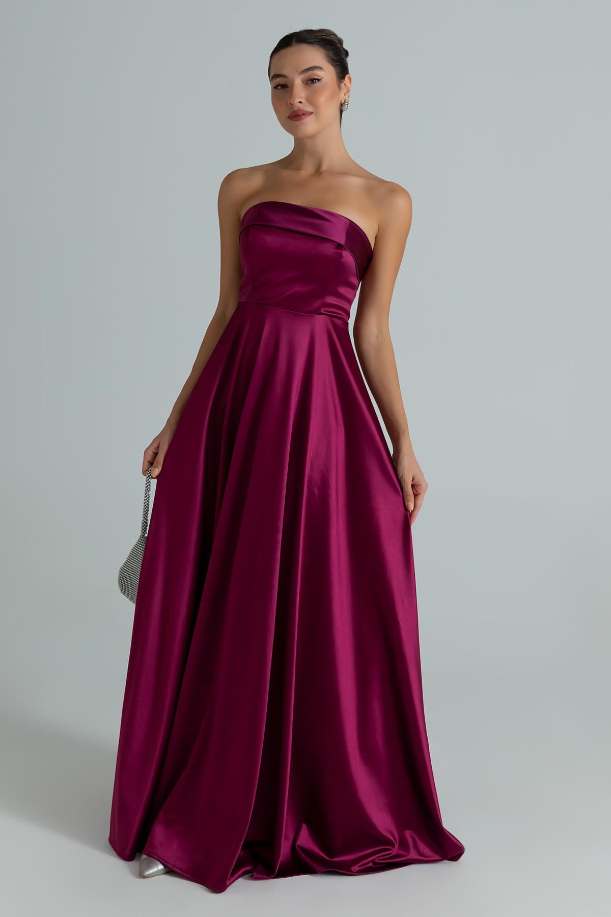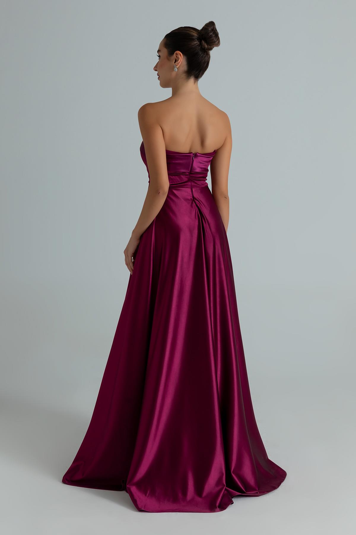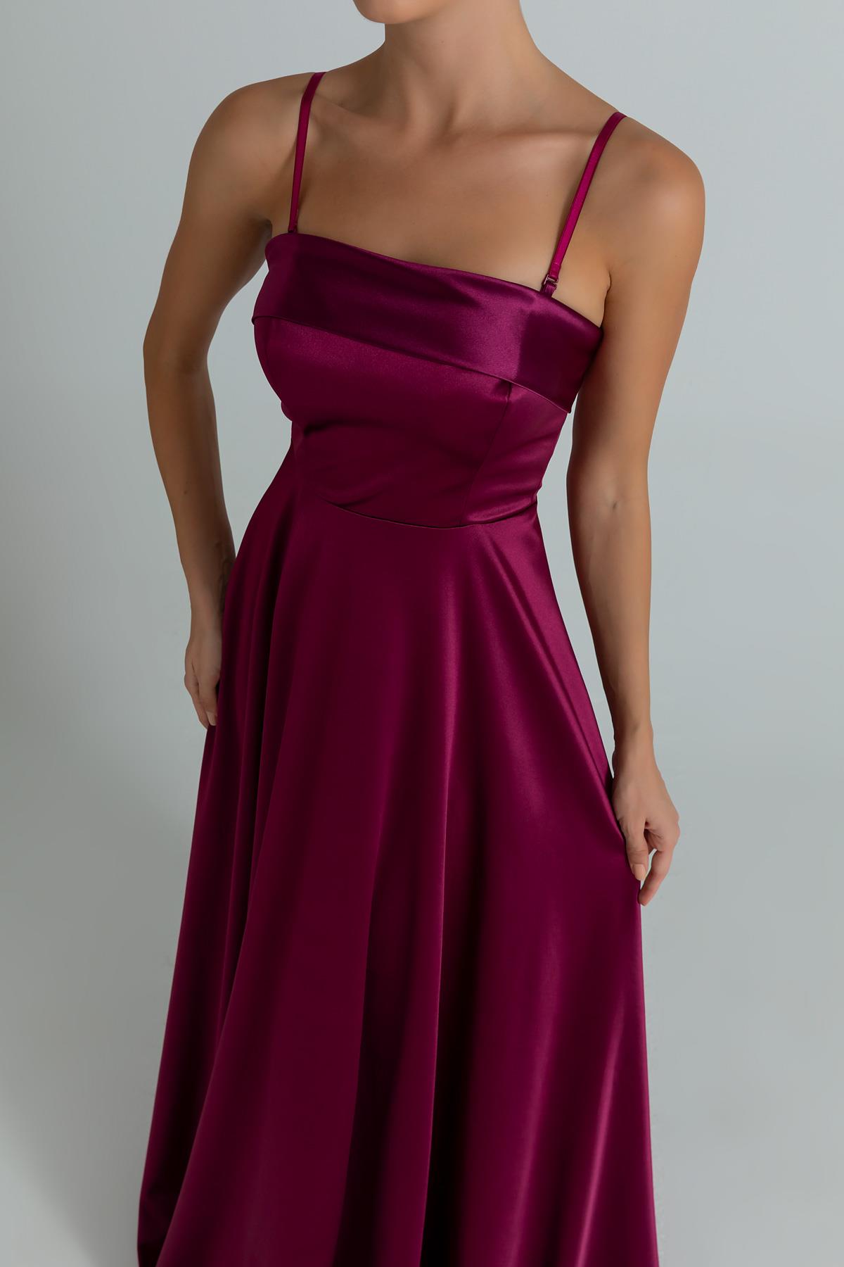 Askılı Saten Abiye - MÜRDÜM (BES008ABY0024142)