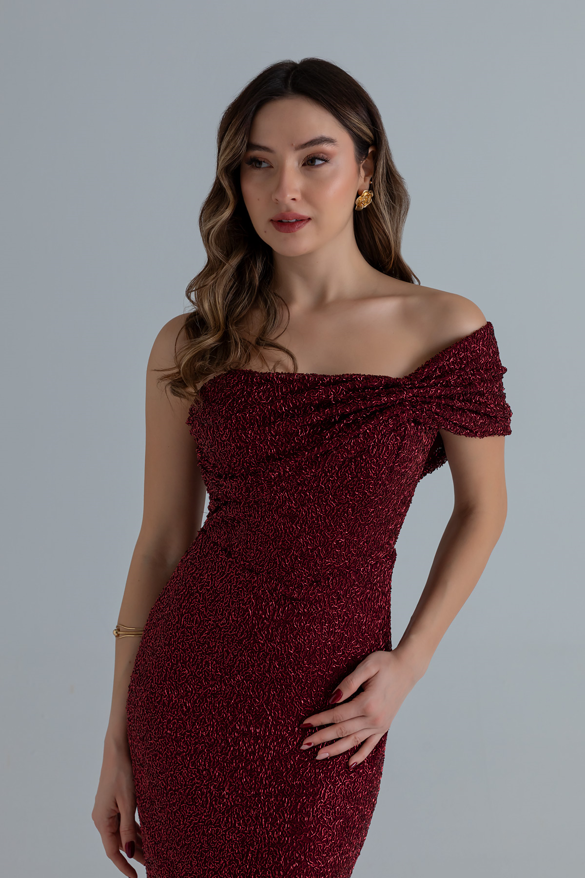 Boncuk İşlemeli Abiye - BORDO (BFW008ABY0009121)