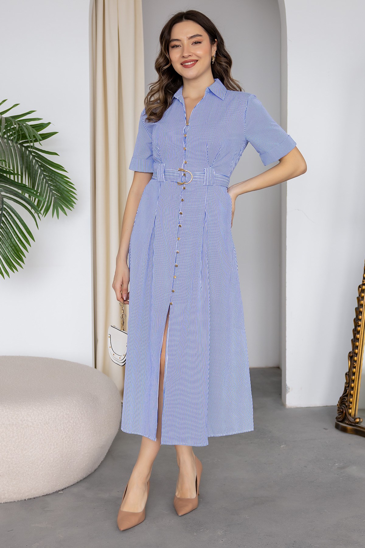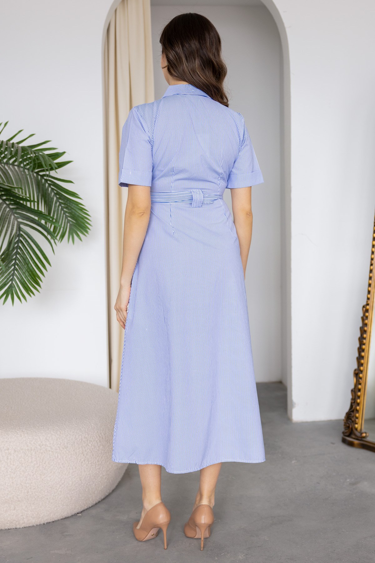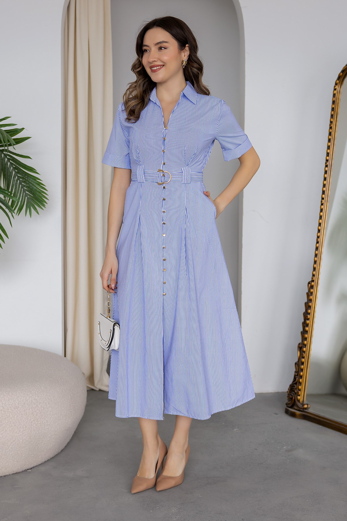 Çizgili Gömlek Elbise - MAVİ (BFW095ELB0003104)