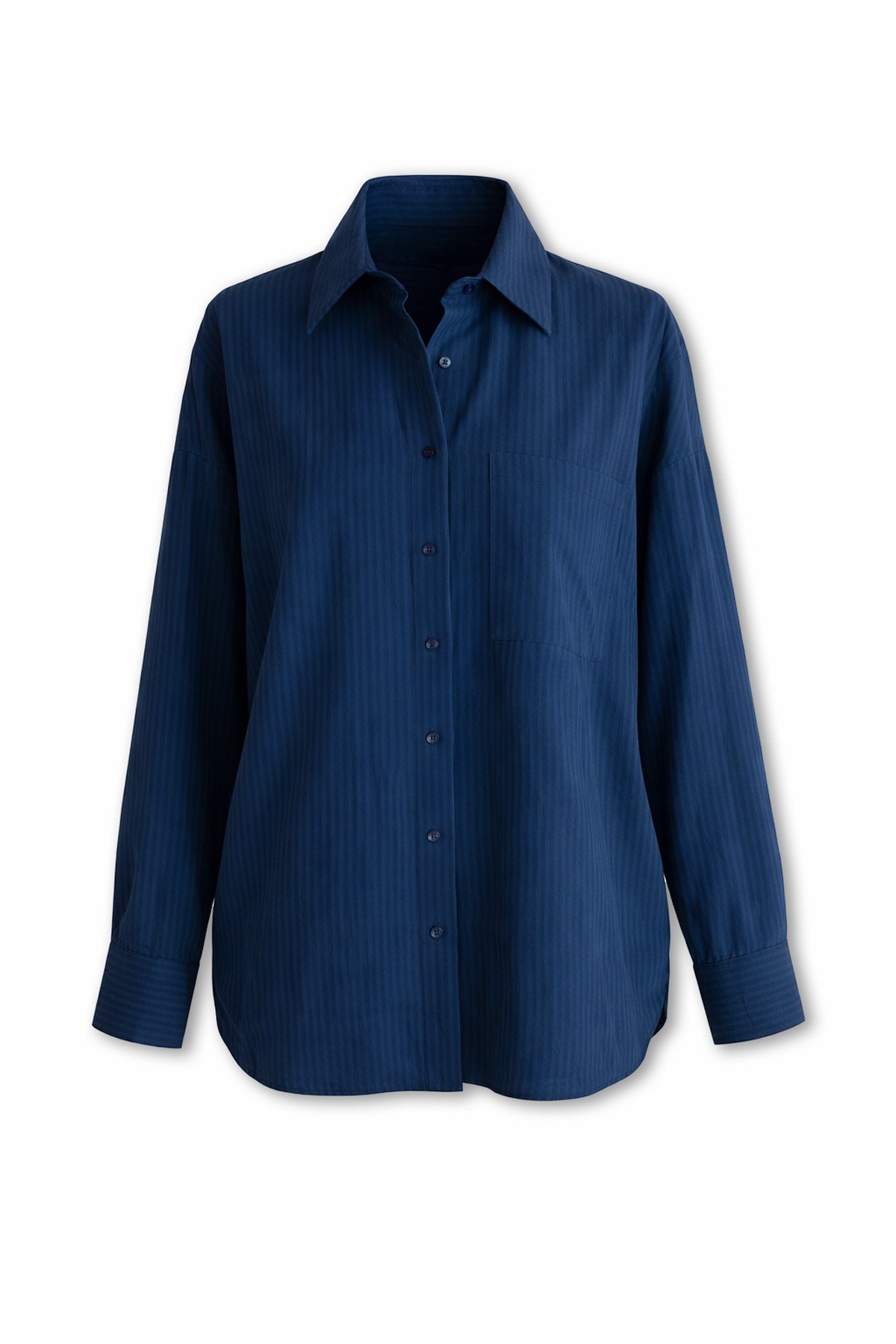 Çizgili Oversize Gömlek - LACİVERT (BFW163GÖM0002110)