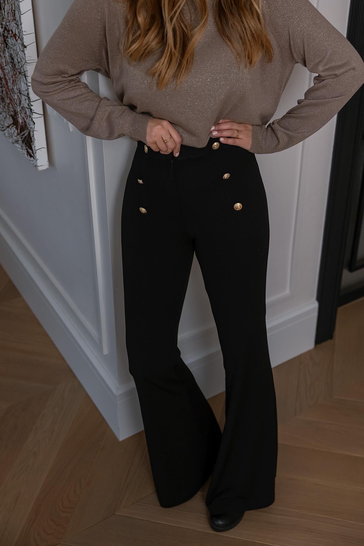 Gold Düğmeli İspanyol Paça Pantolon - SİYAH (BFW550PAN0001100)