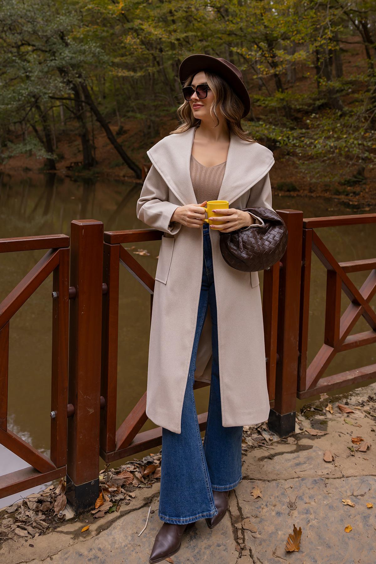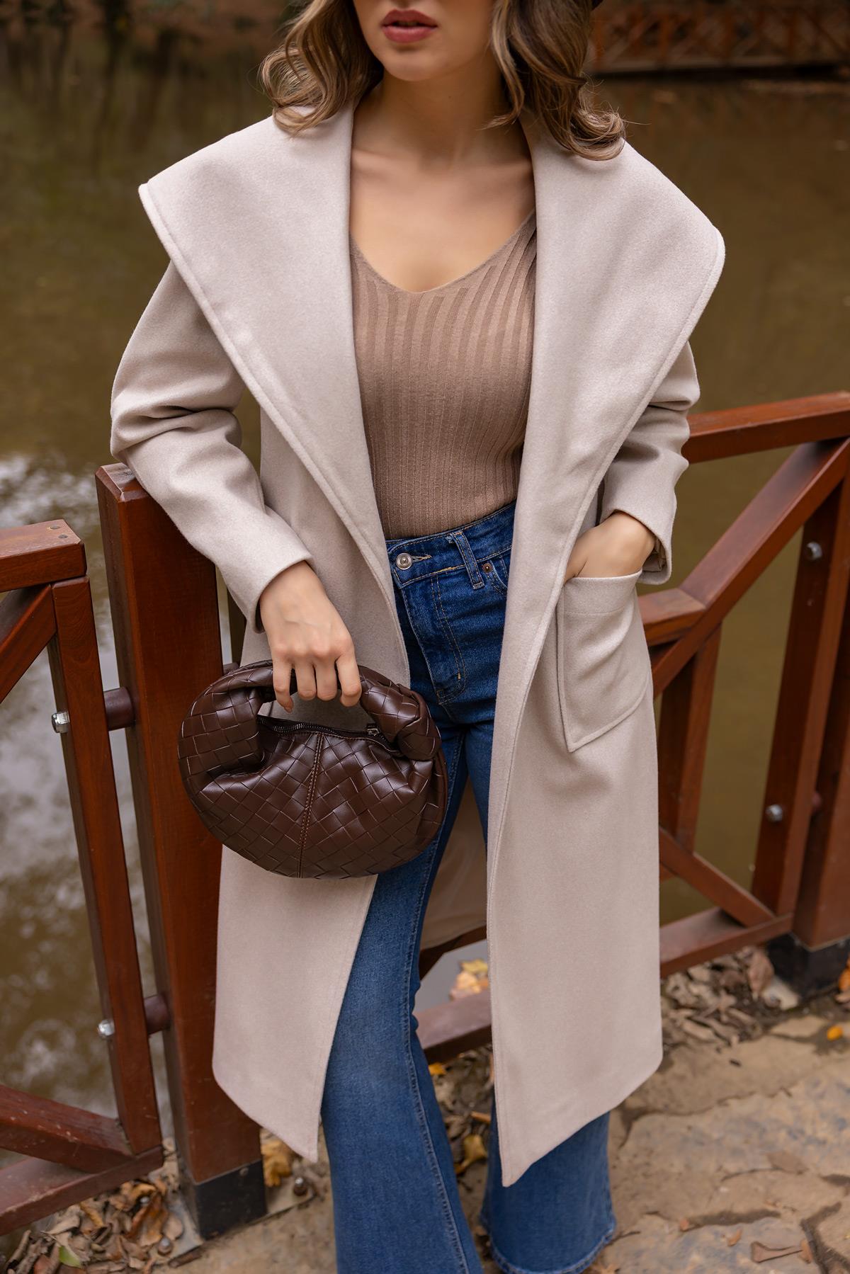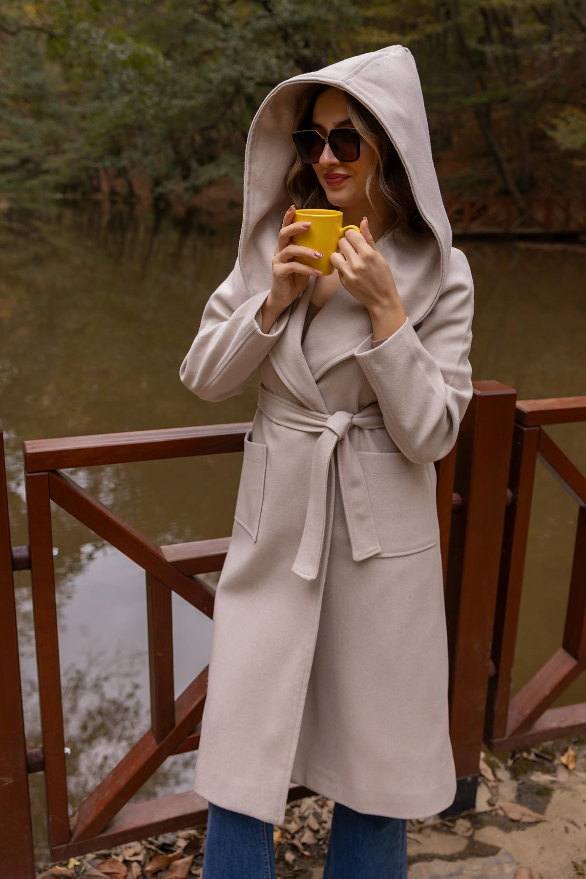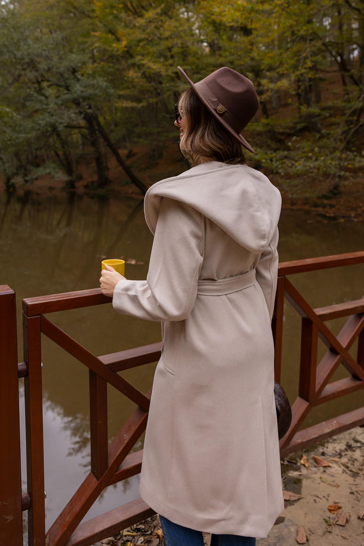 Kapüşonlu Kaşe Kaban - TAŞ (BFW477KBN0001145)
