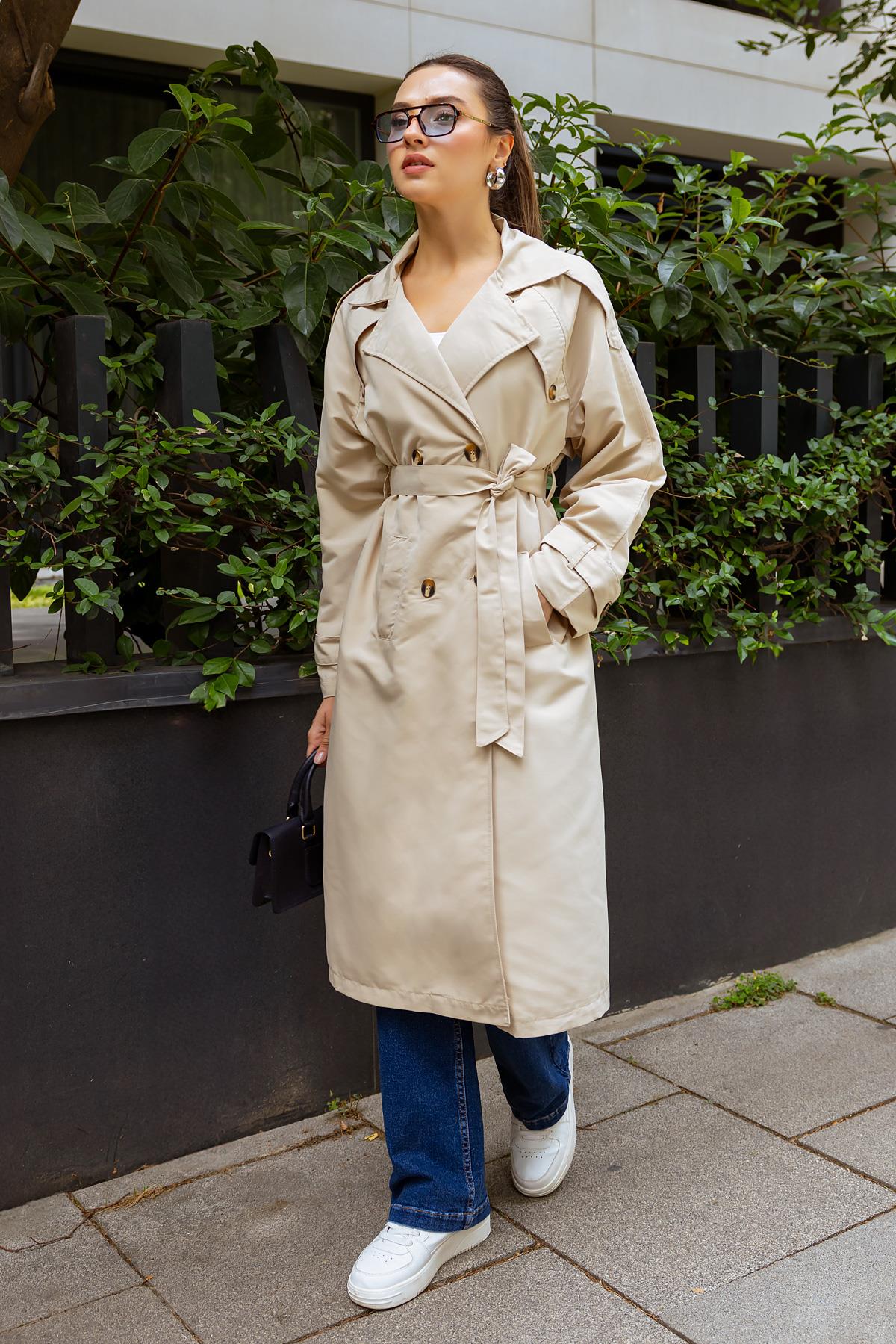 Oversize Kemerli Trençkot - KREM (BES396TRNÇ001131)
