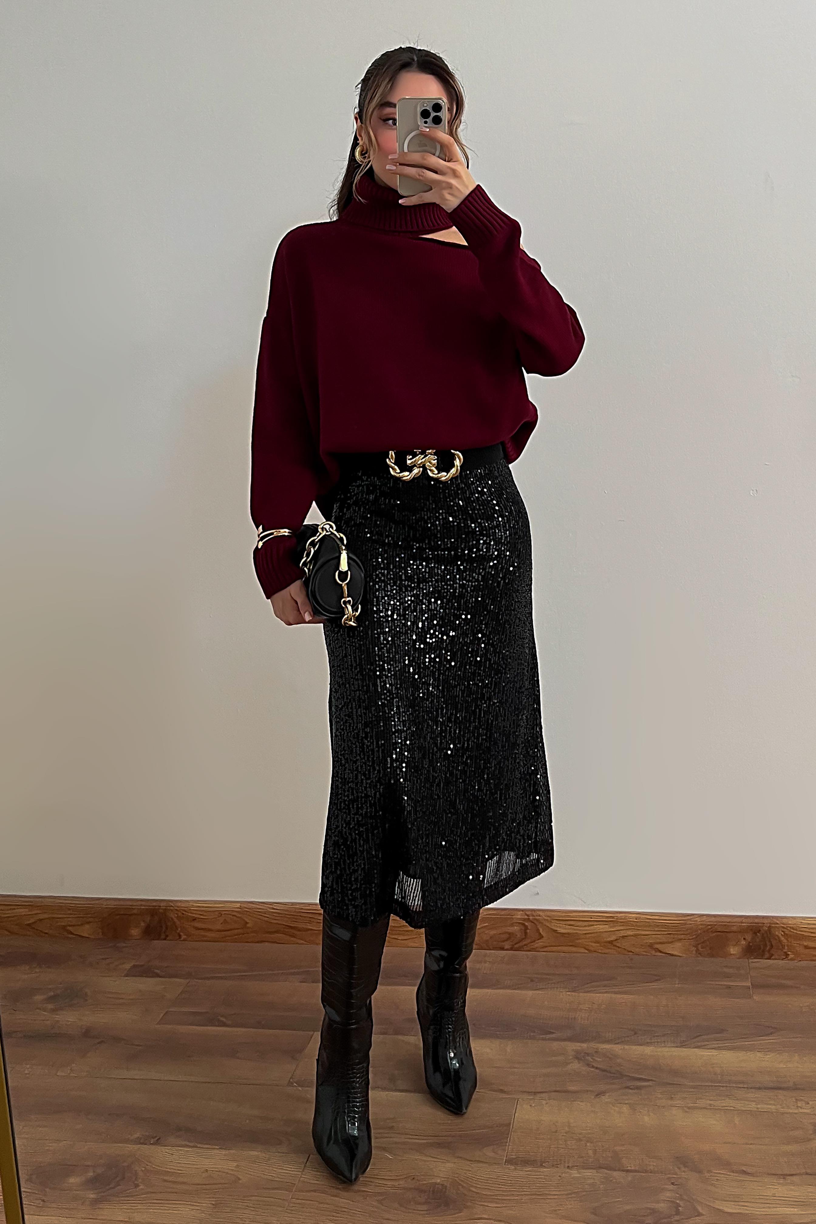 Payetli Midi Boy Etek - SİYAH (BFW024ETK0002100)