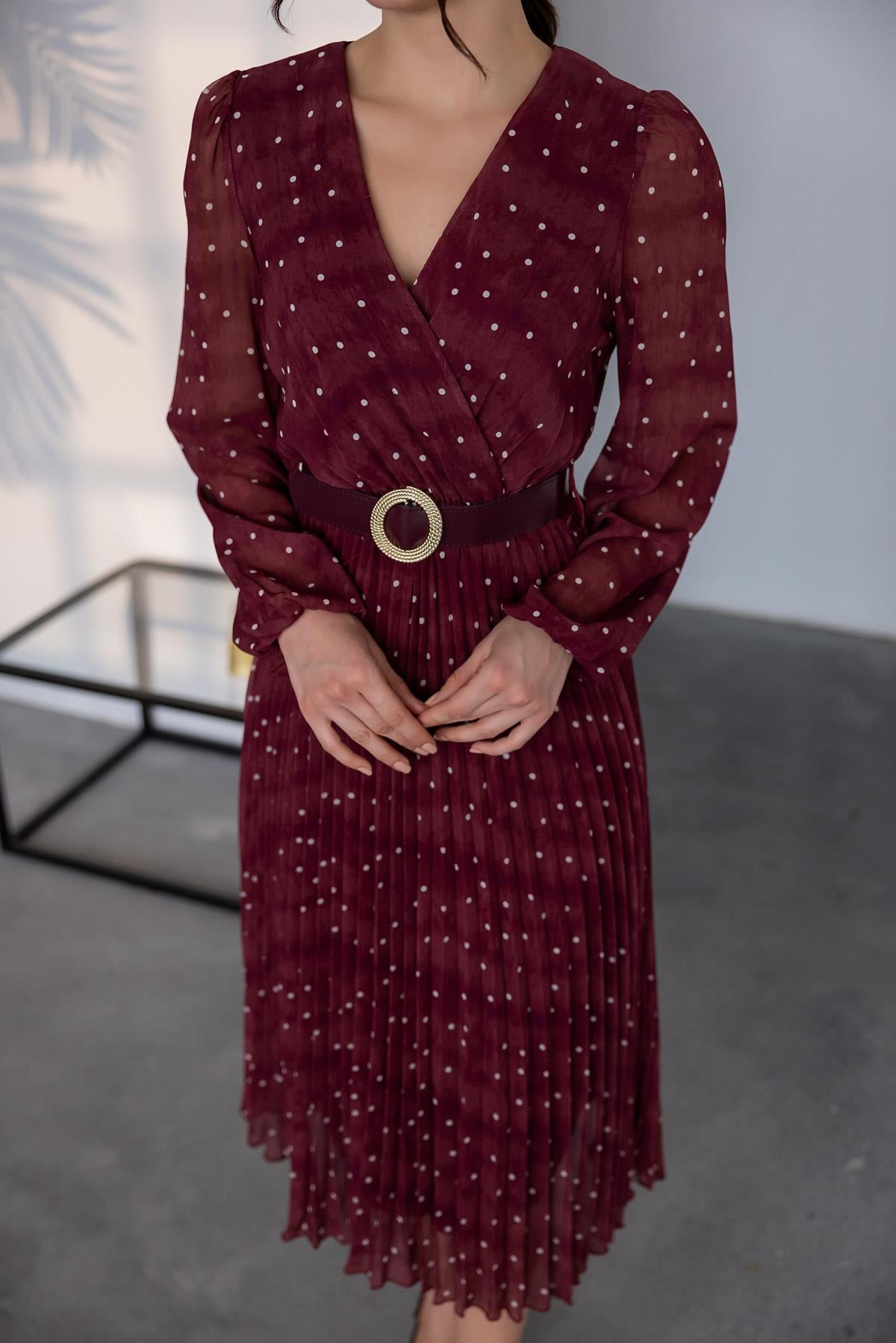 Puantiye Desen Piliseli Elbise - BORDO (BES531ELB0002121)