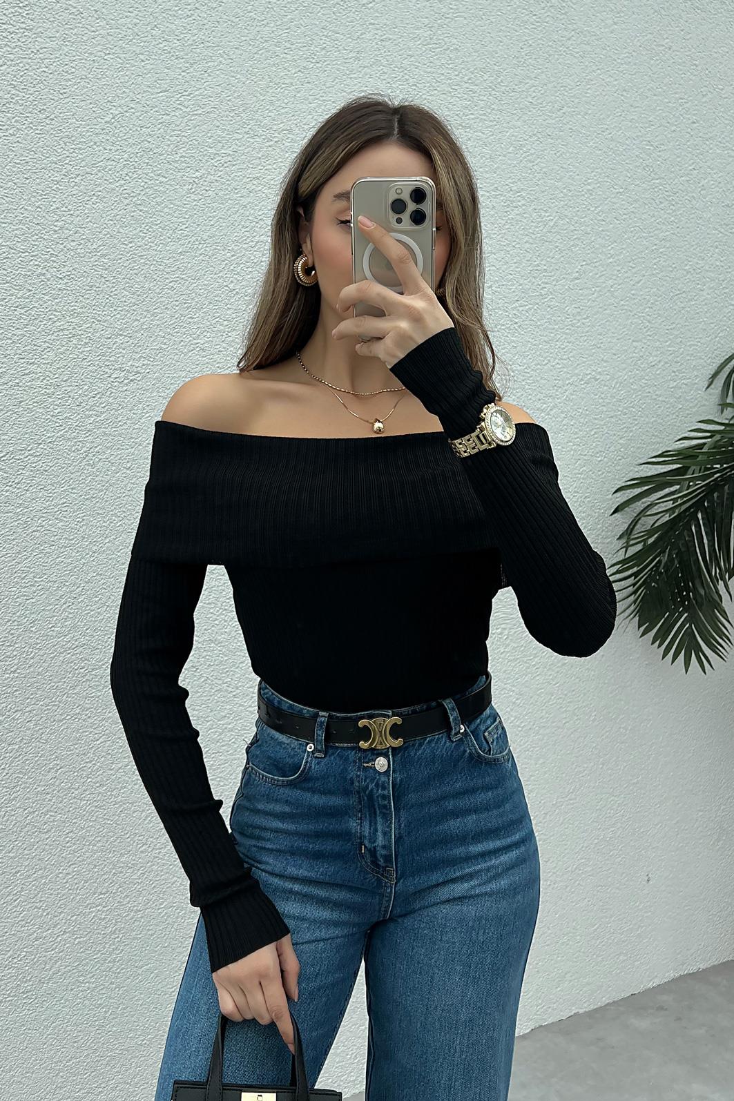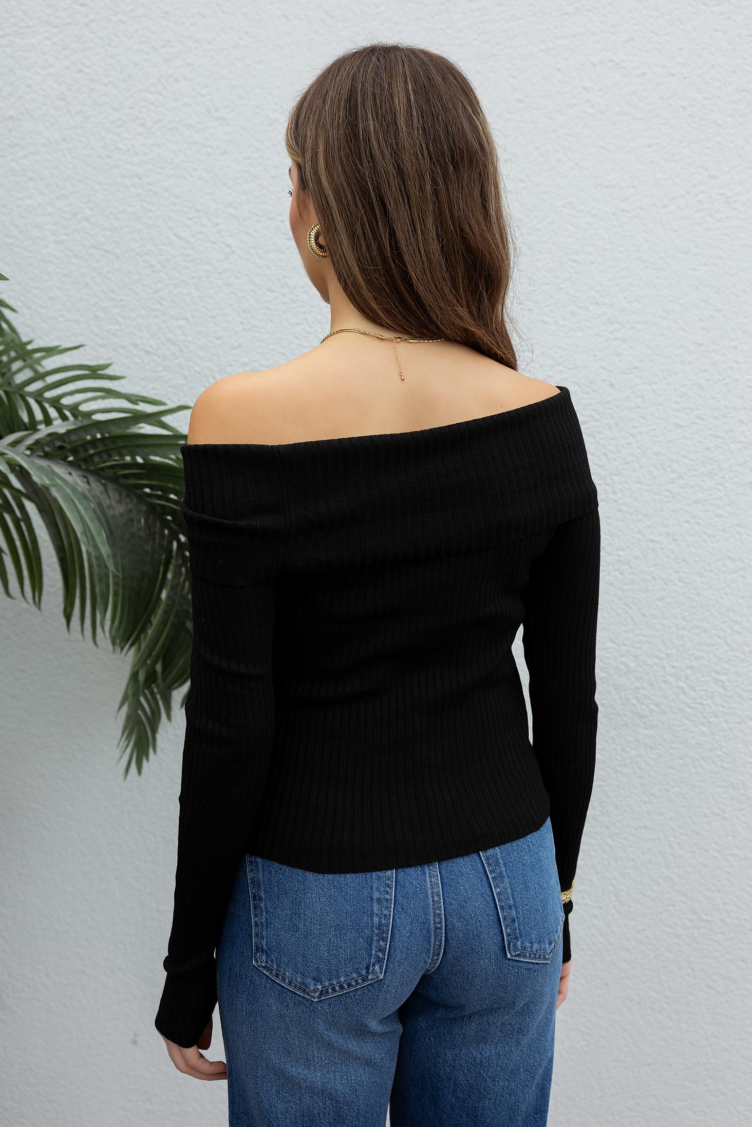 Şal Yaka Triko - SİYAH (BFW130TRK0002100)