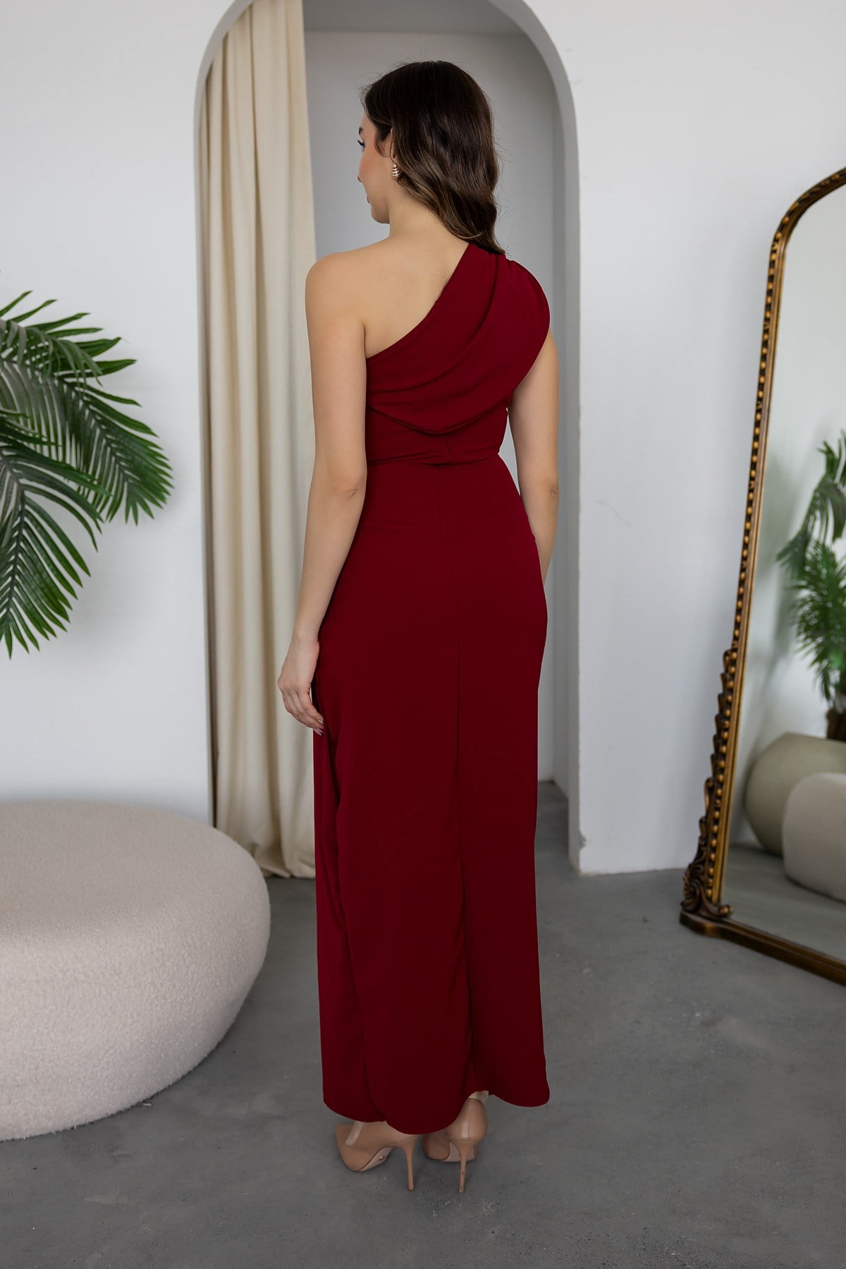 Tek Omuz Broşlu Elbise - BORDO (BFW531ELB0033121)