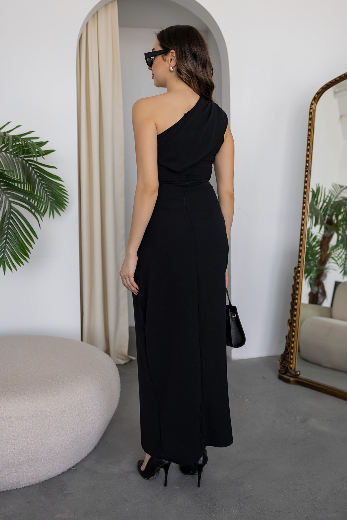 Tek Omuz Broşlu Elbise - SİYAH (BFW531ELB0033100)