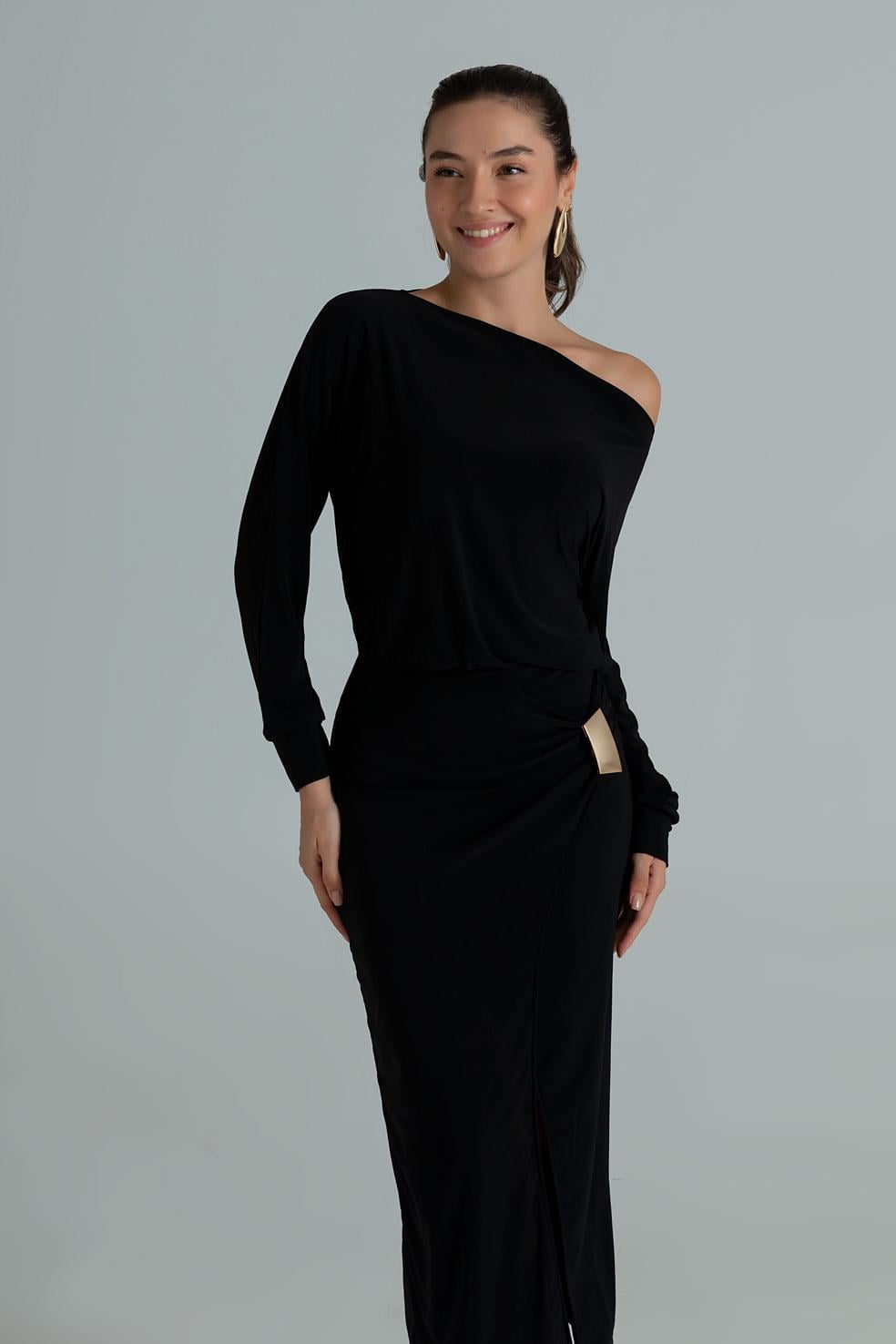 Yarasa Kol Sandy Elbise - SİYAH (BES065ELB0031100)