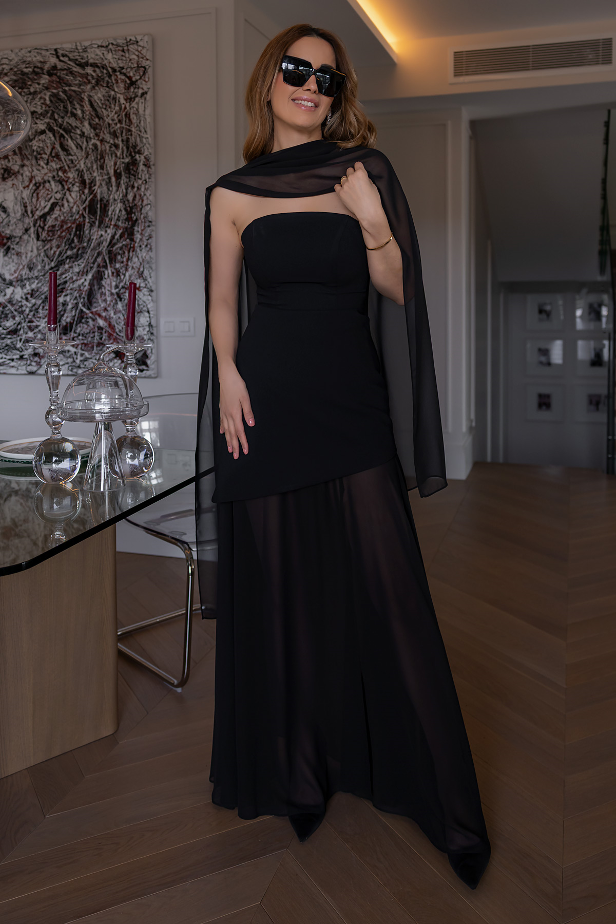 Fularlı Şifon Abiye - SİYAH (BFW662ABY0023100)