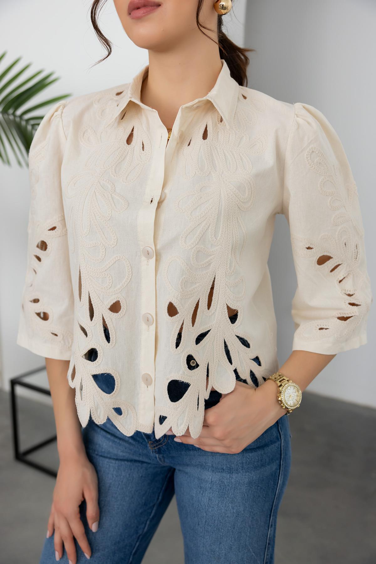Güpürlü Tasarım Gömlek - BEJ (BES347GÖM0001146)