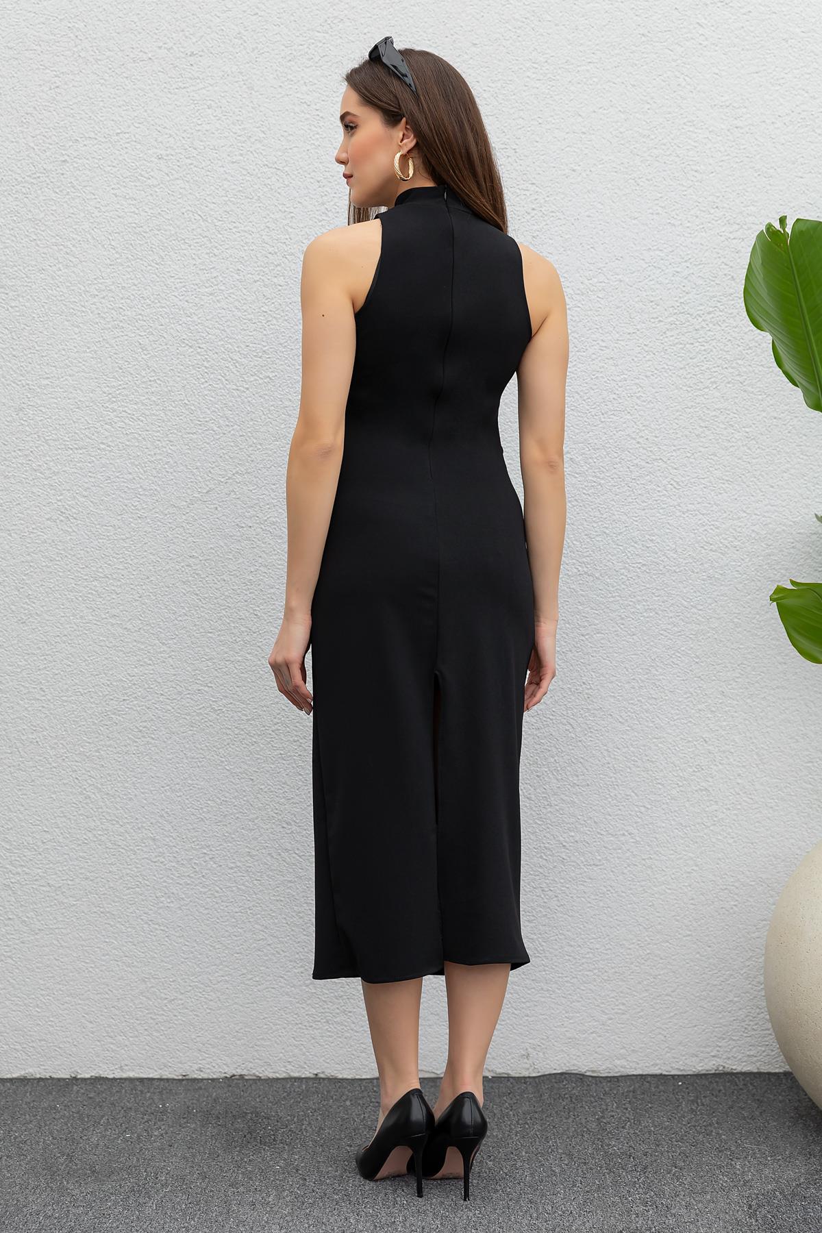 Halter Yaka Midi Elbise - SİYAH (BDS531ELB0001100)