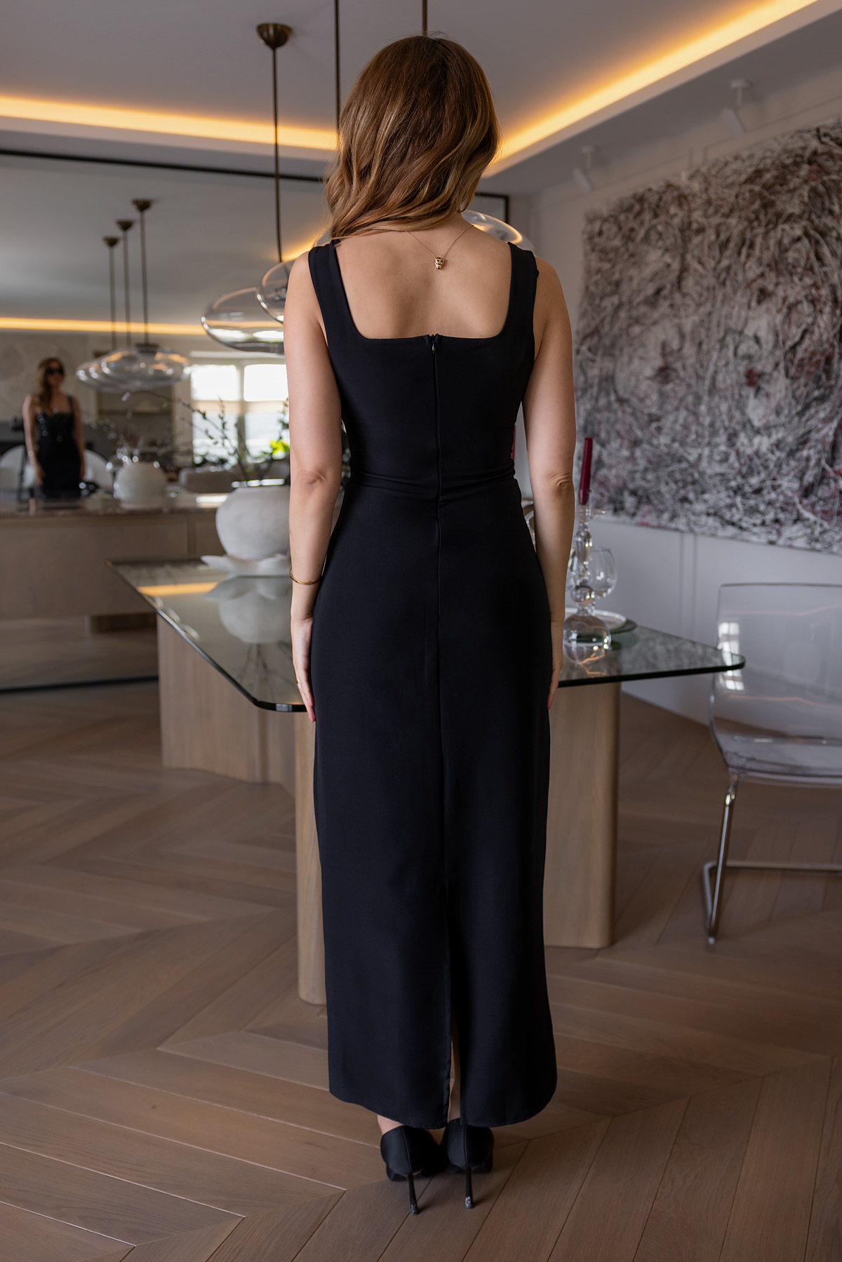 Kalın Askılı Taş İşlemeli Elbise - SİYAH (BFW587ELB0012100)