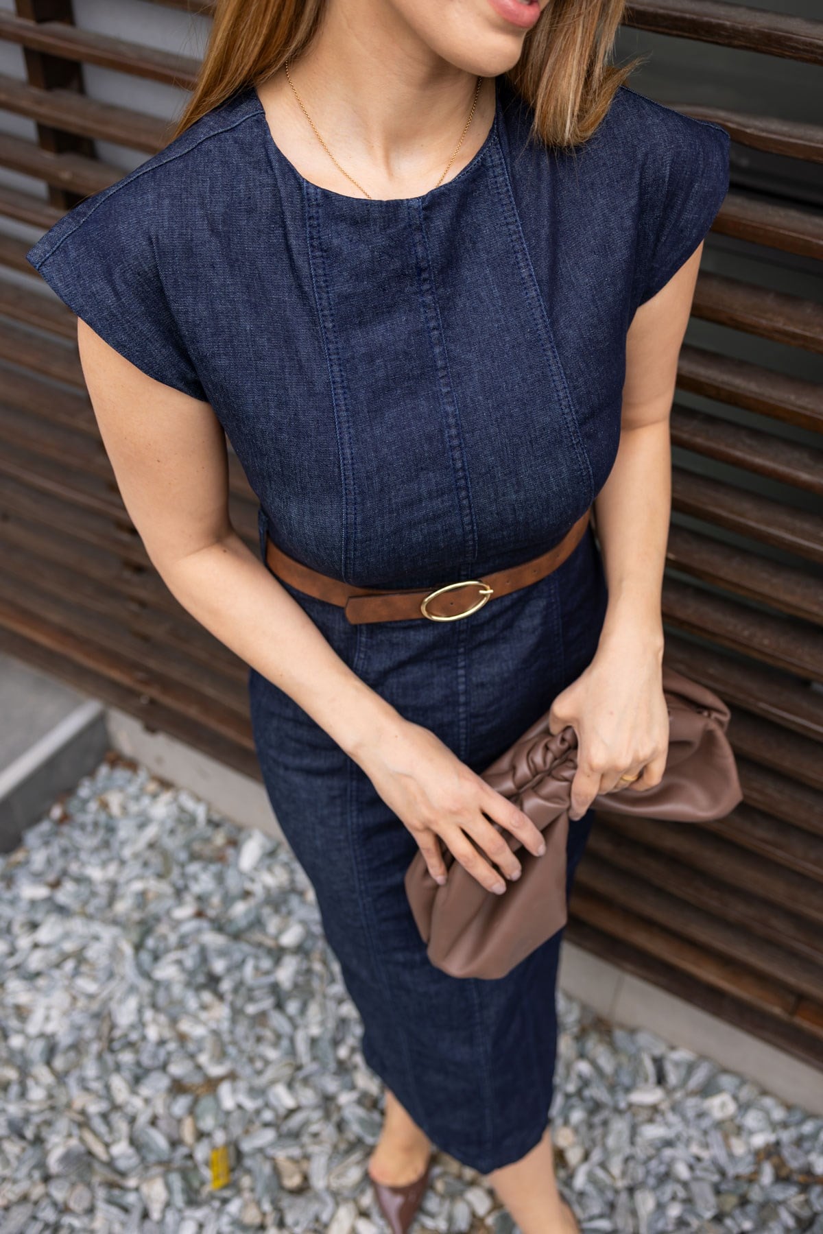 Kemerli Kot Elbise - LACİVERT (BFW383ELB0013110)