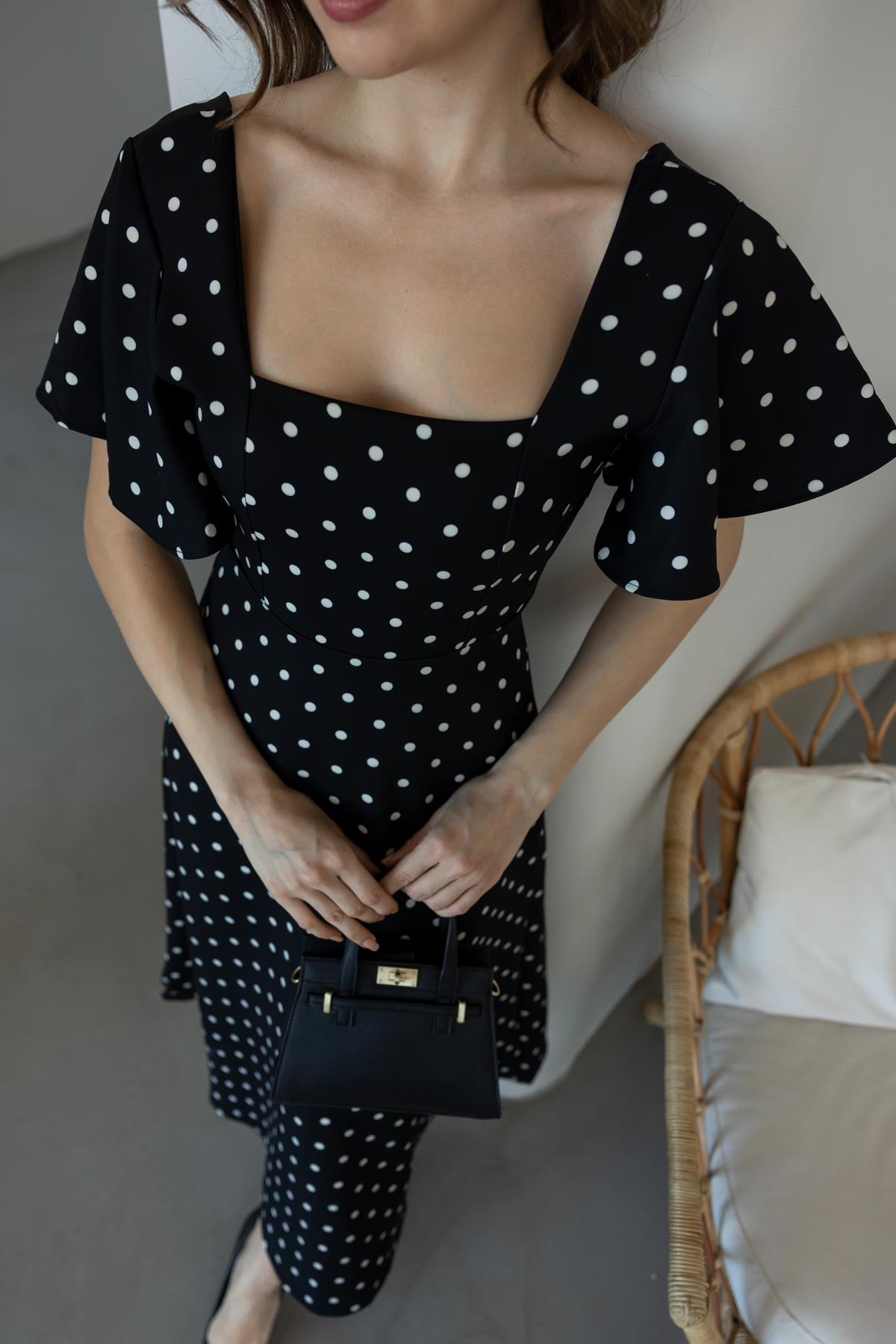 Kol Volanlı Puantiyeli Elbise - SİYAH (BFS065ELB0001100)