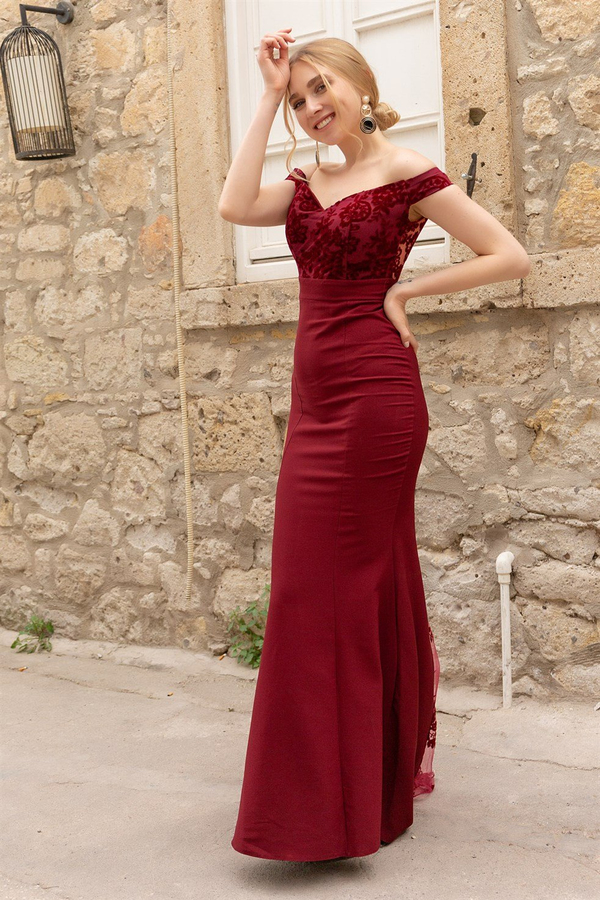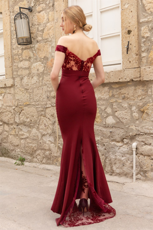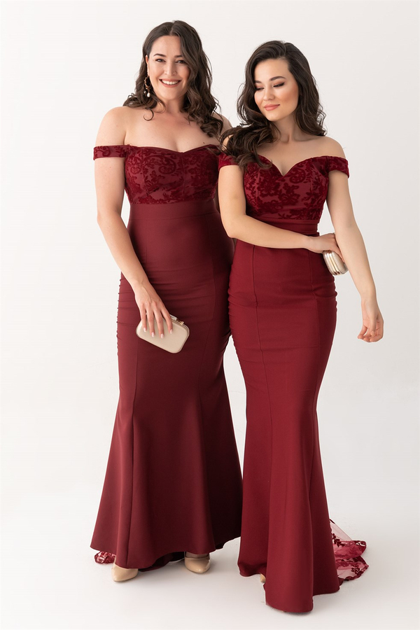 Kuyruk Transparan Balık Elbise - BORDO