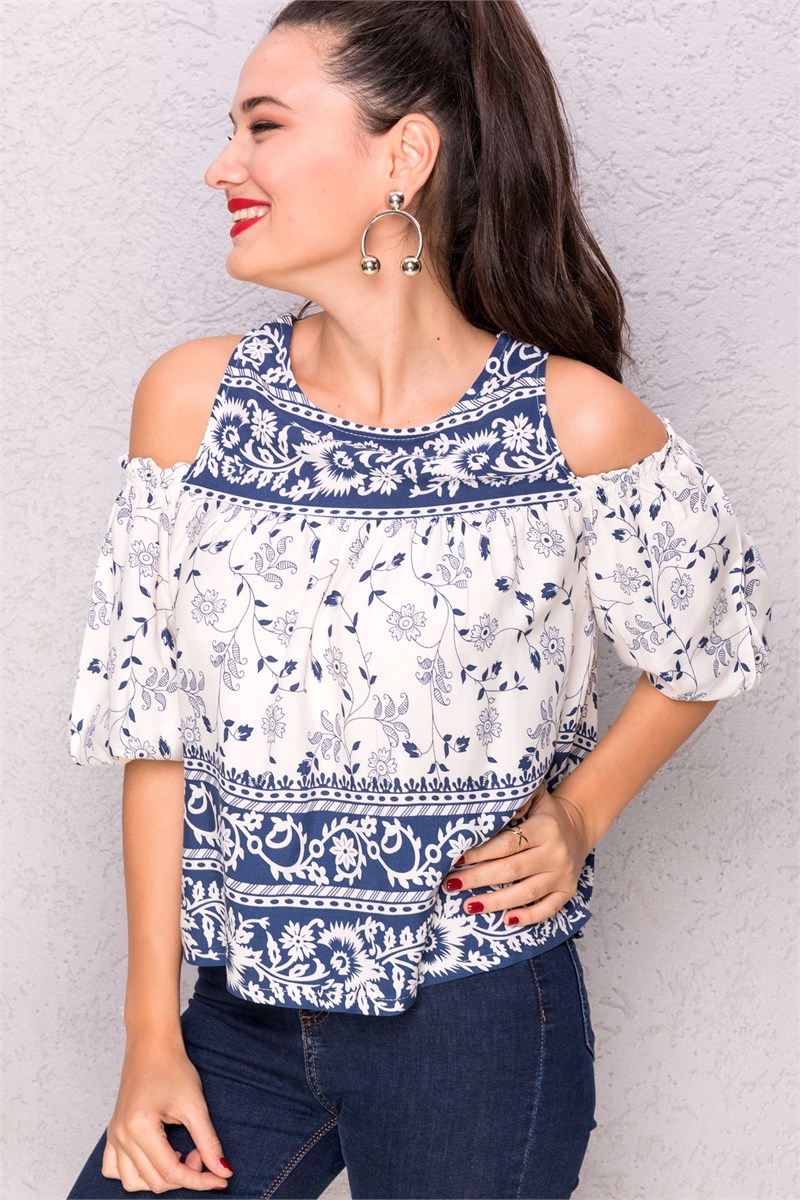 Omuz Dekolte Kol Lastikli Bluz - MAVİ (FRSBLZ0089104)