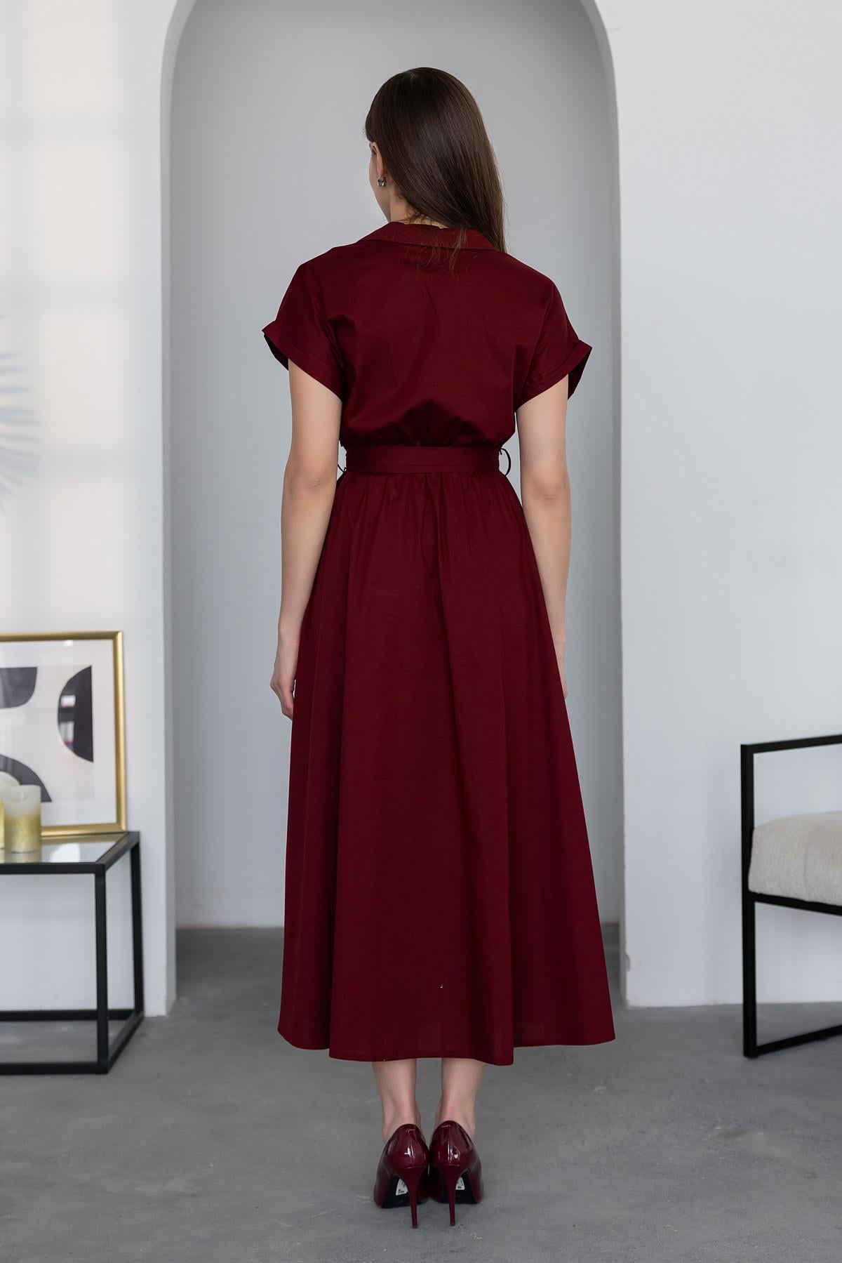 Poplin Gömlek Elbise - BORDO (BEW065ELB0046121)