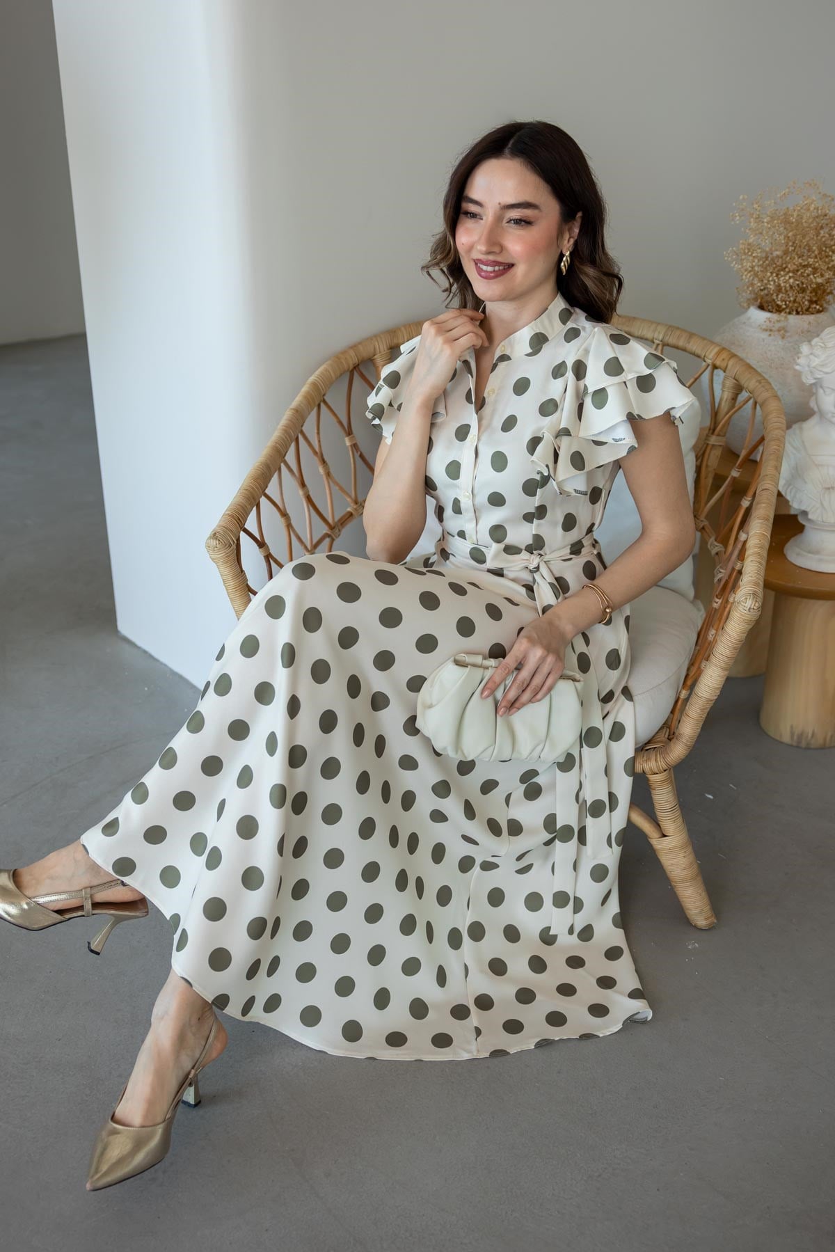 Puantiyeli Keten Elbise - HAKİ (BFW500ELB0006106)