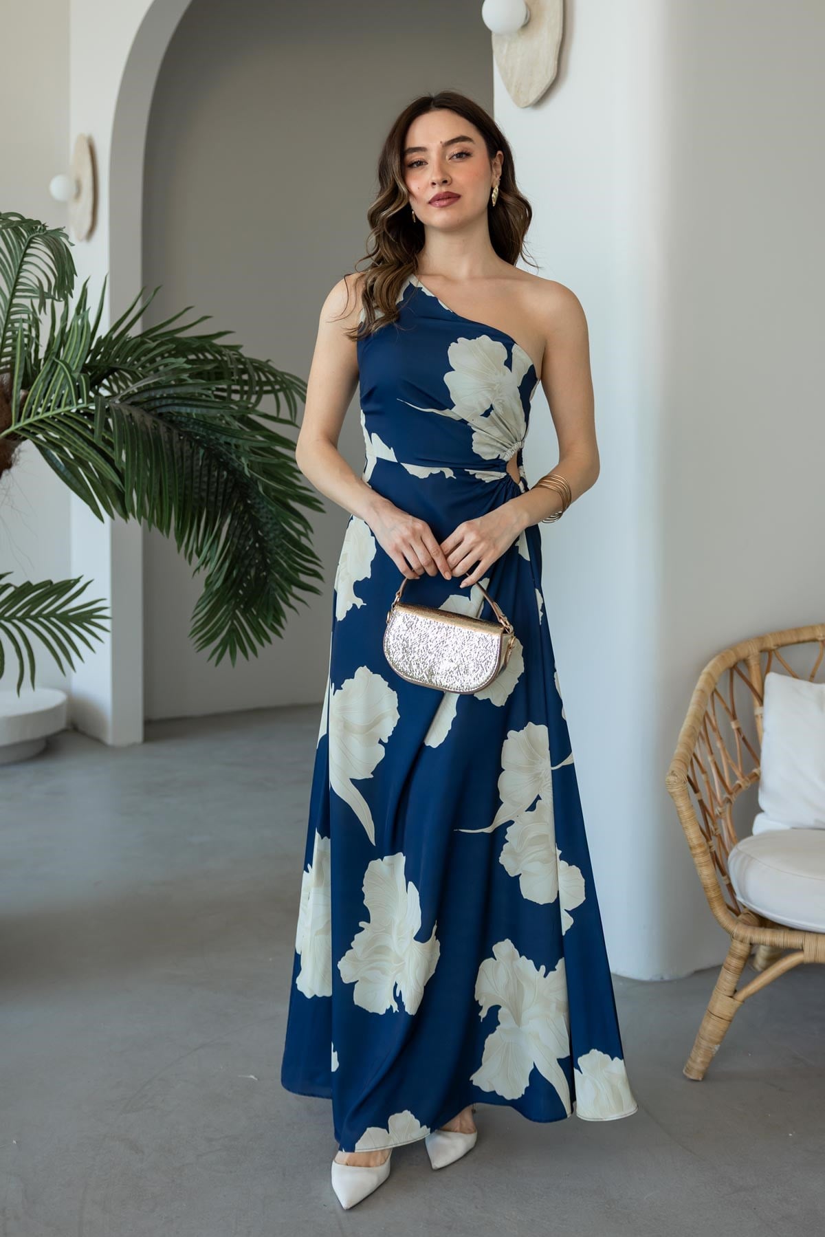 Tek Omuz Bel Drapeli Abiye - İNDİGO (BFW619ABY0001196)