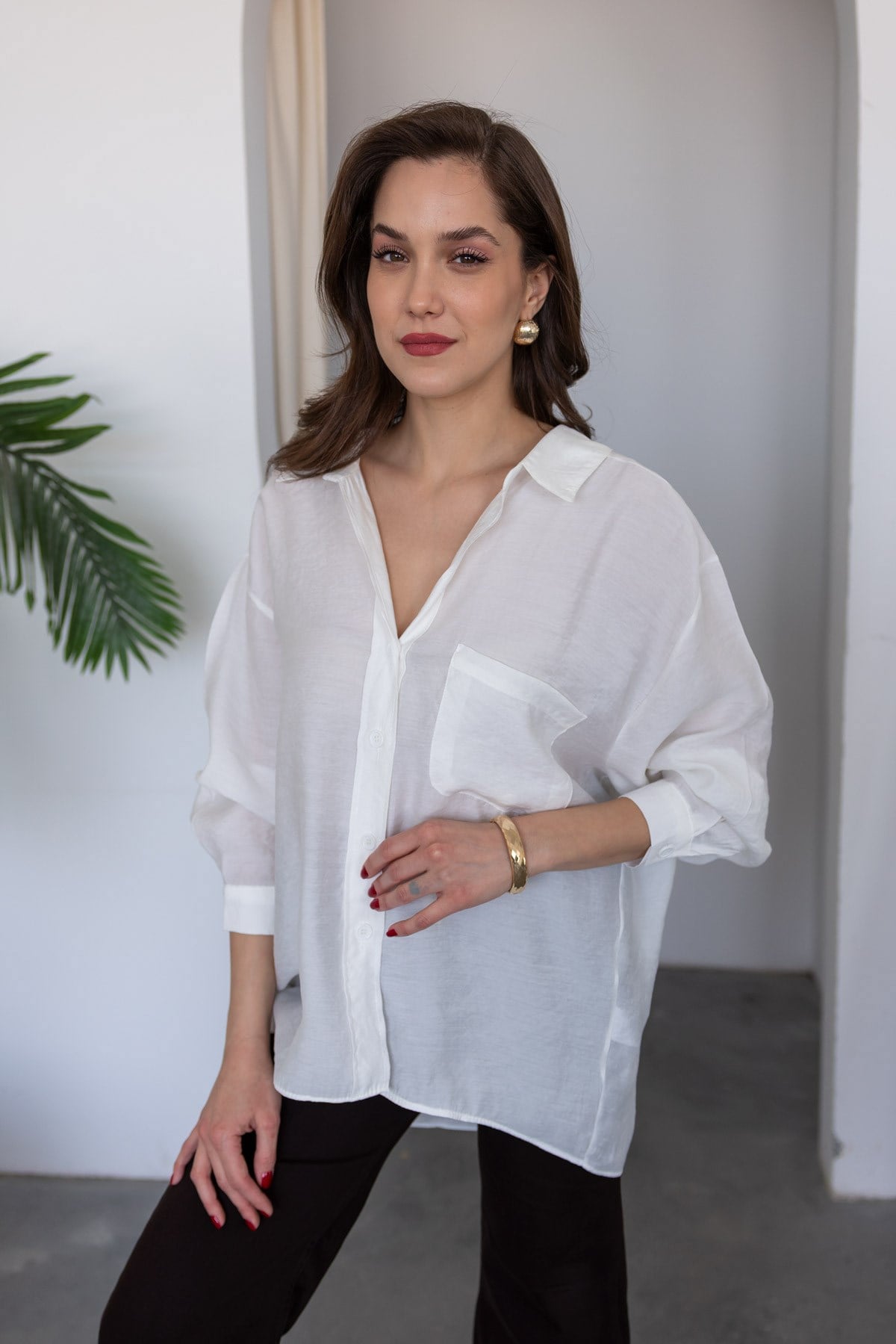 Tensel Oversize Gömlek - BEYAZ (BFW181GÖM0005101)