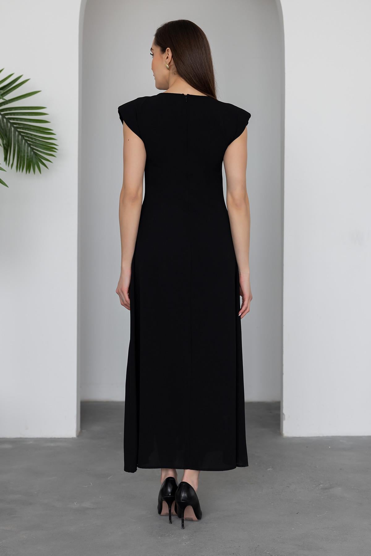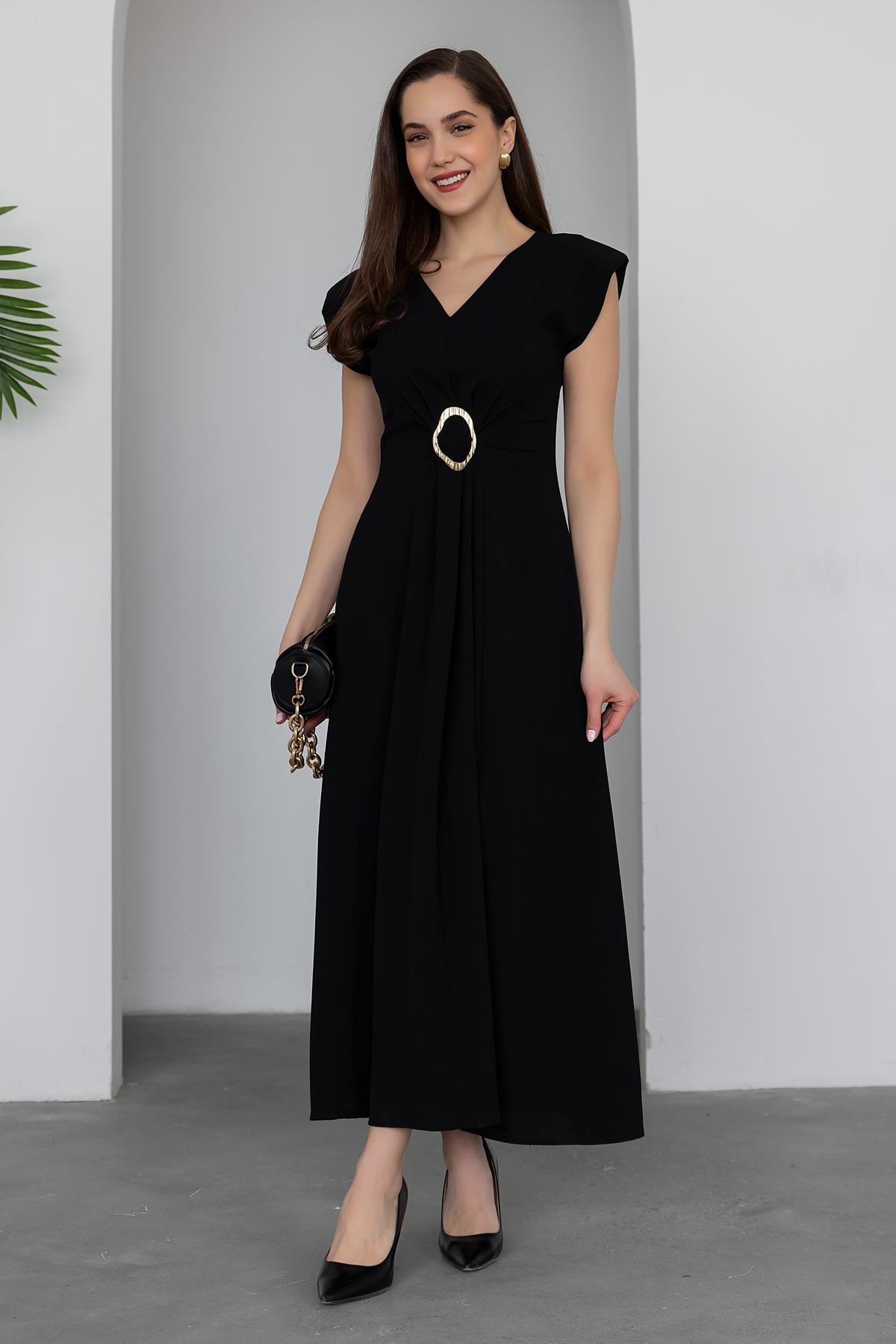 V Yaka Yırtmaçlı Elbise - SİYAH (BEW037ELB0020100)