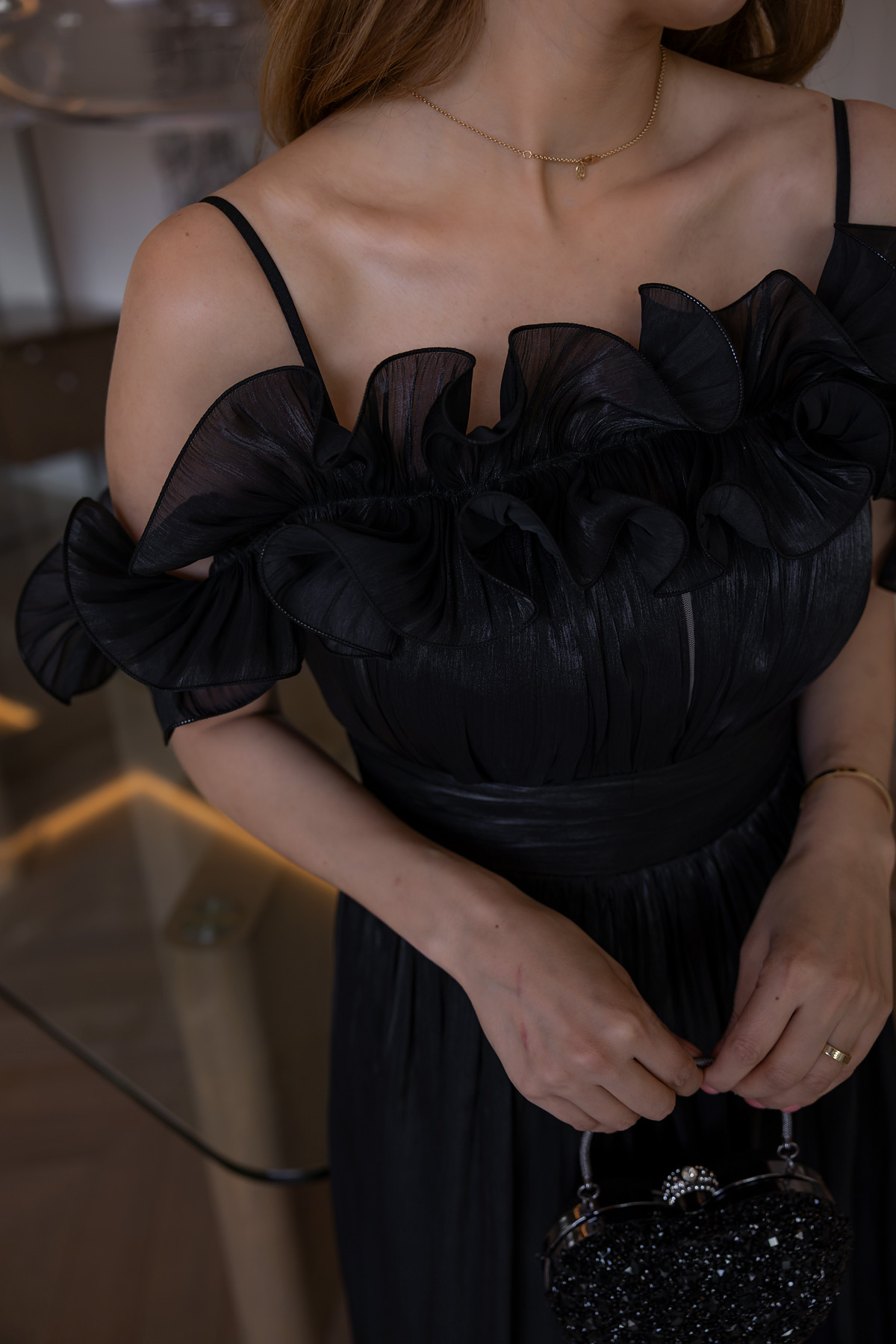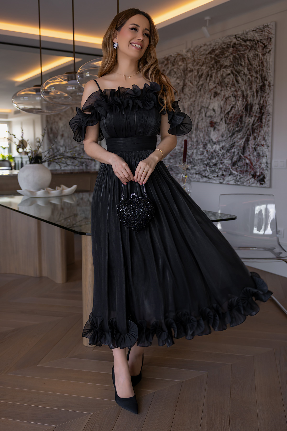 Volanlı Krinkıl Midi Abiye - SİYAH (BES626ABY0017100)